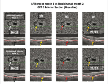 When used one week after injection, optical coherence tomography angiography can help clinicians determine how effective their treatment has been on neovascular membrane reperfusion.